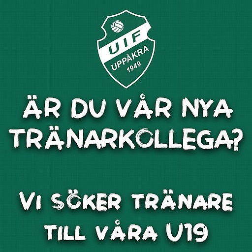Uppåkra IF söker ny huvudtränare till vår U19-trupp (herrjuniorer) då vår nuvarande tränare inför nästa säsong tar över vårt A-lag. Vill du hellre jobba som assisterande tränare är du också välkommen att höra av dig.