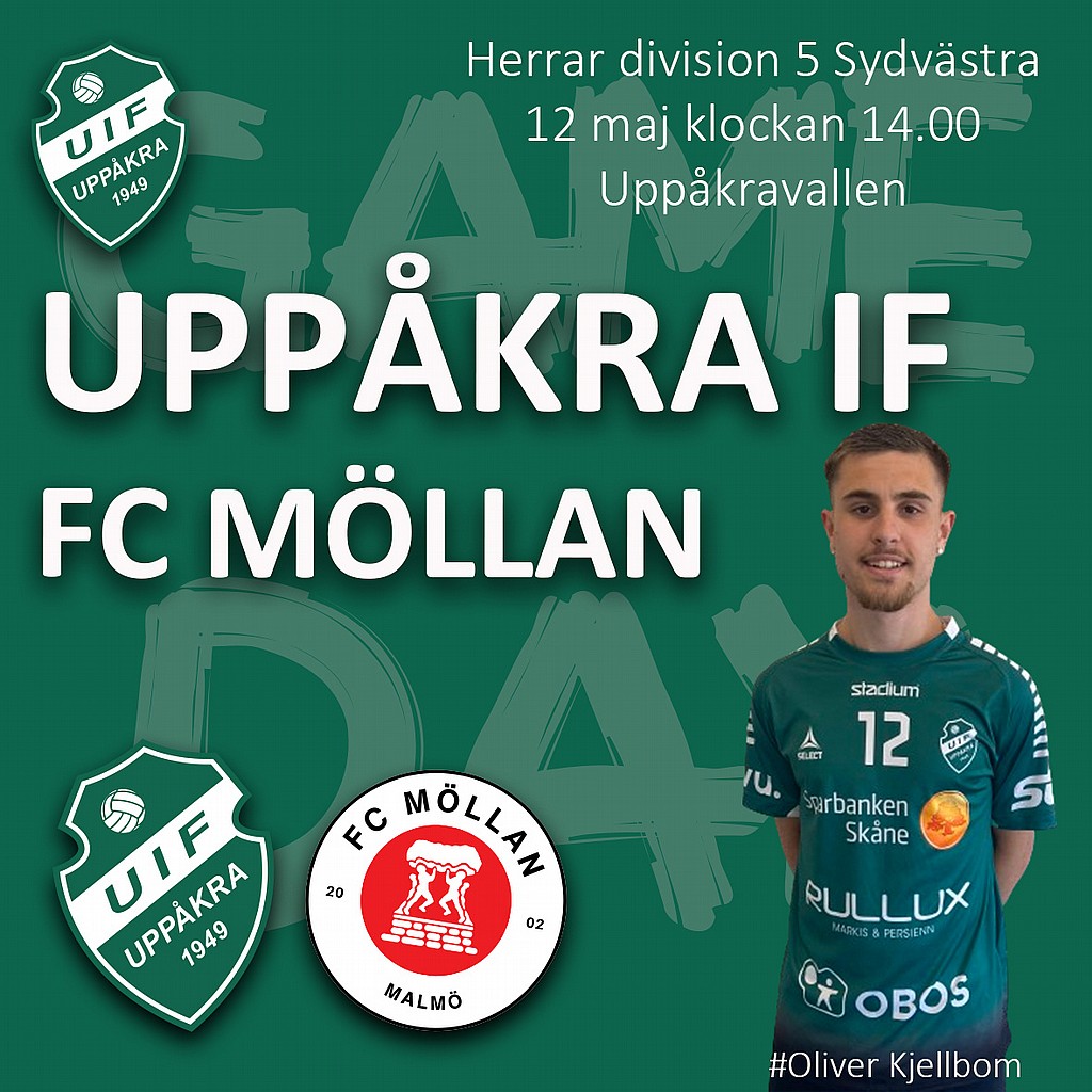 Herrarna spelar hemma på Uppåkravallen. Premiär på naturgräset och för motståndet står hårdsatsande FC Möllan från Malmö. Gästerna är obesegrade efter sex omgångar och står på full pott, dvs 18 poäng. Även Uppåkras herrar är efter sex omgångar obesegrade. Dpck har man två oavgjorda matcher så poängskörden just nu är alltså 14 poäng. Vid hemmaseger idag går man upp på andra plats. En poäng efter Möllan så vi pratar om en seriefinal idag.