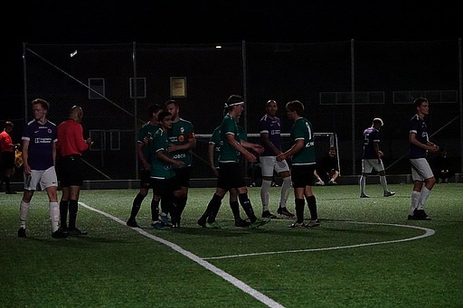 Matchen inleddes med ett konstant tryck mot vårt mål där backlinjen och Hannes fick jobba hårt från start. Nervöst? Osäkert? Ja bra fråga men vi lyckades inte med särskilt mycket under första halvtimmen. Slarv i uppspel och kommunikation resulterade i Hallands Nations-ledning 1-0 redan i 11:e minuten. Efter det gaskade vi upp oss lite och Elias kunde sedvanligt göra mål i krångliga situationer. Han tryckte in 1-1 efter frispark utifrån kanten.